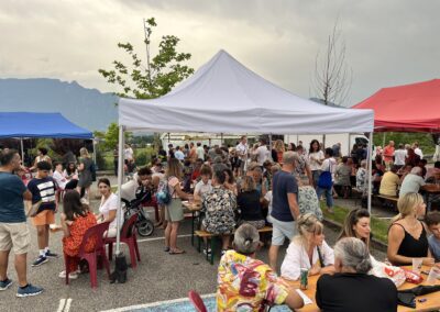 La place de la mairie était bondée avec une ambiance conviviale et sympathique.
