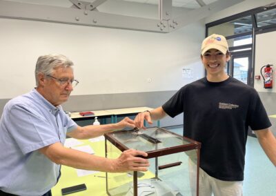 Depuis ce vendredi à 14 juin 2024 à 14 h, cet imposant ouvrage d’environ 800 kg est installé à sa place entre le parking et la gare de Mouxy, sur une parcelle communale préparée par Romain Millet paysagiste. Cette épreuve délicate, ce moment historique, était supervisé par plusieurs bénévoles du TCAC derrière leur président.