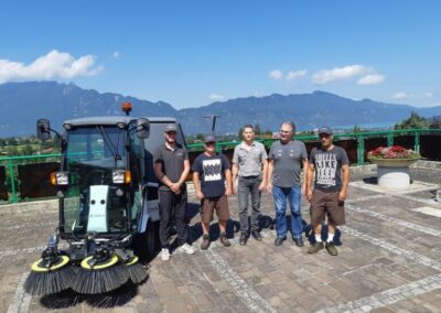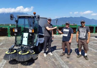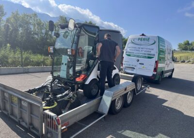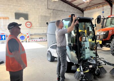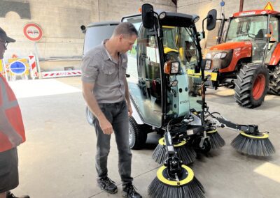 Cette balayeuse est multi-fonctions : outre le fait qu’elle balaye, elle est dotée de brosses métalliques pour désherber🌿, d’un système d’aspiration pour les bouches d’eau pluviales ainsi qu’un karsher embarqué pour nettoyer le mobilier urbain.